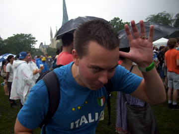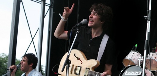 Biggest Disappoinment: I hate to go here, but I have to say Vampire Weekend. Something about the charisma, or lack there of, displayed by these Ivy Leaguers really rubbed me the wrong way, to the point that I wanted to pummel the lead singer senseless by the end of the set. The songs weren’t bad at all, as “A-Punk”, “Oxford Comma”, “The Kid’s Don’t Stand A Chance” and “Campus” stood out as clear highlights, but the bizarre, almost childish silliness in between songs made these guys appear out of their league, espeically in between the two best sets of the day. This is not to mention that the one new song they played bordered on unlistenable and that the lead singer nearly broke into a Tourette’s fit during the absurd “Blake’s Got A New Face.” The set had its moments, but I was hoping for a bit more maturity. Perhaps these guys are better off not playing live, because I liked the album a lot more before I saw their facial expressions. (below) Oh, and did I mention the drummer wore a Phish shirt?