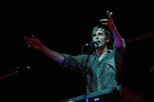 #2: !!!- This was about the wildest that the crowd at the main stages got all weekend, thanks to the dance rock of !!! and the maniacal dancing by leadman Nic Offer, who wore hilariously short shorts as he hopped around the stage like a monkey on speed. (below) I particularly enjoyed the female backing vocals and the accompanying mohawk. The band opened with the groovy “Yadnus” before really getting the crowd into a frenzy with title track “Myth Takes” and the slightly annoying “All My Heroes Are Weirdoes.” Later, virtual chaos ensued when they played “Must Be The Moon” and closed the set with crowd favorite “Heart of Hearts.” These guys really got the dance party started and the music sounded great. I’m not sure I saw anyone perform with more energy than Offer all weekend. The band moved up on my list a great deal; I think this is another artist whose music really translates well when played live.