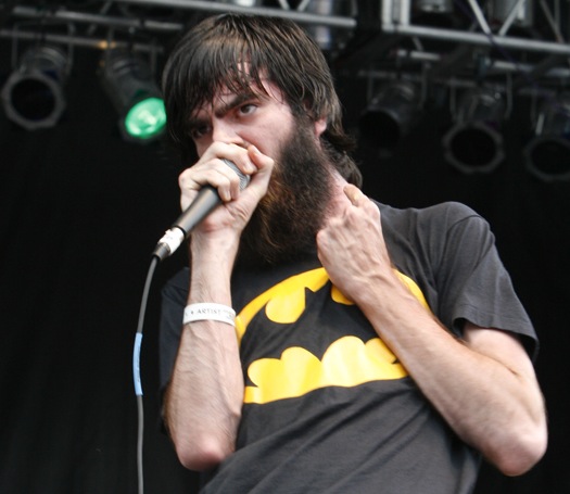 #5: Titus Adronicus- The angst-filled rockers from New Jersey delivered a short, powerful set that got the day off to a powerful start. I was dying to see what the lead singer looked like after having listened to his wailing vocals of misery for the past few months, and his scruffy beard and batman T-shirt did not disappoint. (below) Titus received extra credit from me for keeping things interesting, as they opened their set with a short intro from Pulp’s “Common People”, an obvious nod to Jarvis Cocker’s set later in the day, where the aforementioned song was almost certain to be absent from the set. After that, they went straight into an intense version of “Upon Viewing Brueghel’s ‘Landscape With The Fall Of Icarus'” before launching into crowd pleasers “My Time Outside The Womb”, “Joset of Nazareth’s Blues” and their self-titled song, where chants of “Your Life is Over” made for some wholesome fun. All the while, the lead singer climbed the sides of the stage; I was pretty impressed with his ability to perform. They closed the set with “Fear and Loathing in Mahwah, NJ” despite my calls for “Arms Against Atrophy” and “No Future”, but I left the set happy.