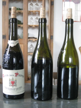 Back in town, we popped a bottle in our lovely room overlooking the terrace at the wonderful Hotel D’Europe, which is the clear choice among the hotels in Avignon. We received amazing service and a complimentary upgrade to a gorgeous room. The day before our tour, we enjoyed the historical sights of the Palais des Papes and the famous Pont de Avignon bridge. Near the Palace, there is a small wine shop that sells Rhone wines at a significant discount to normal retail price, so we stopped in to pick up a bottle. The shop advertises itself as a tasting room as well, but this was not the case, as no one was incredibly eager (or friendly enough) to pour us any wine. I had my heart set on a buying bottle of the Chateau Gigognan Chateauneuf-du-Pape Vigne du Regent 2006 (92 Points), as I had awarded the 2007 version with a “Wine of the Month” recognition last year. Although the 2006 doesn’t quite live up to the gamey complexities I remembered in the 2007 (93 Points), it is still a solid wine and developing nicely, with a smooth, concentrated body of juicy red plum, red licorice and red cherry fruit backed with pepper, sweet tobacco and a persistent mineral kick through the long finish.