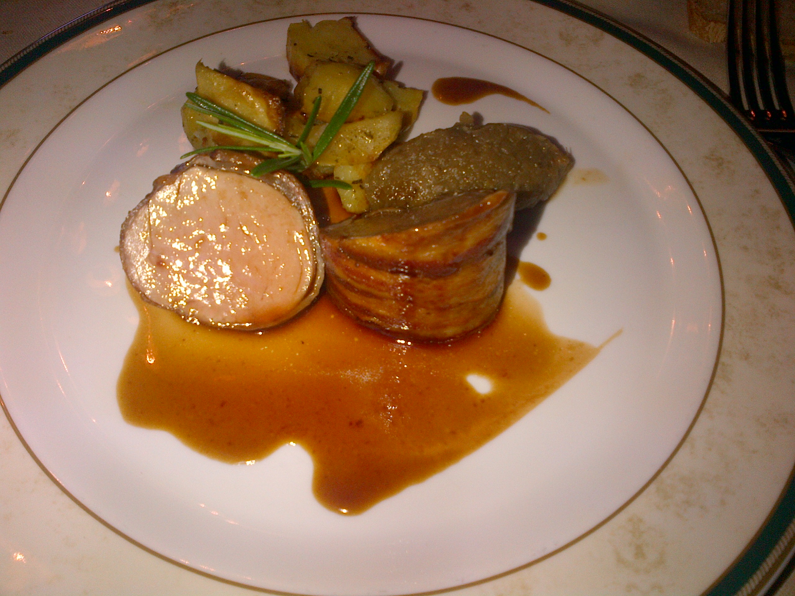 For my main course, I went for it all and got the pancetta arrosto, a roasted pork belly rolled with peppercorns in a Brunello au jus (Below).