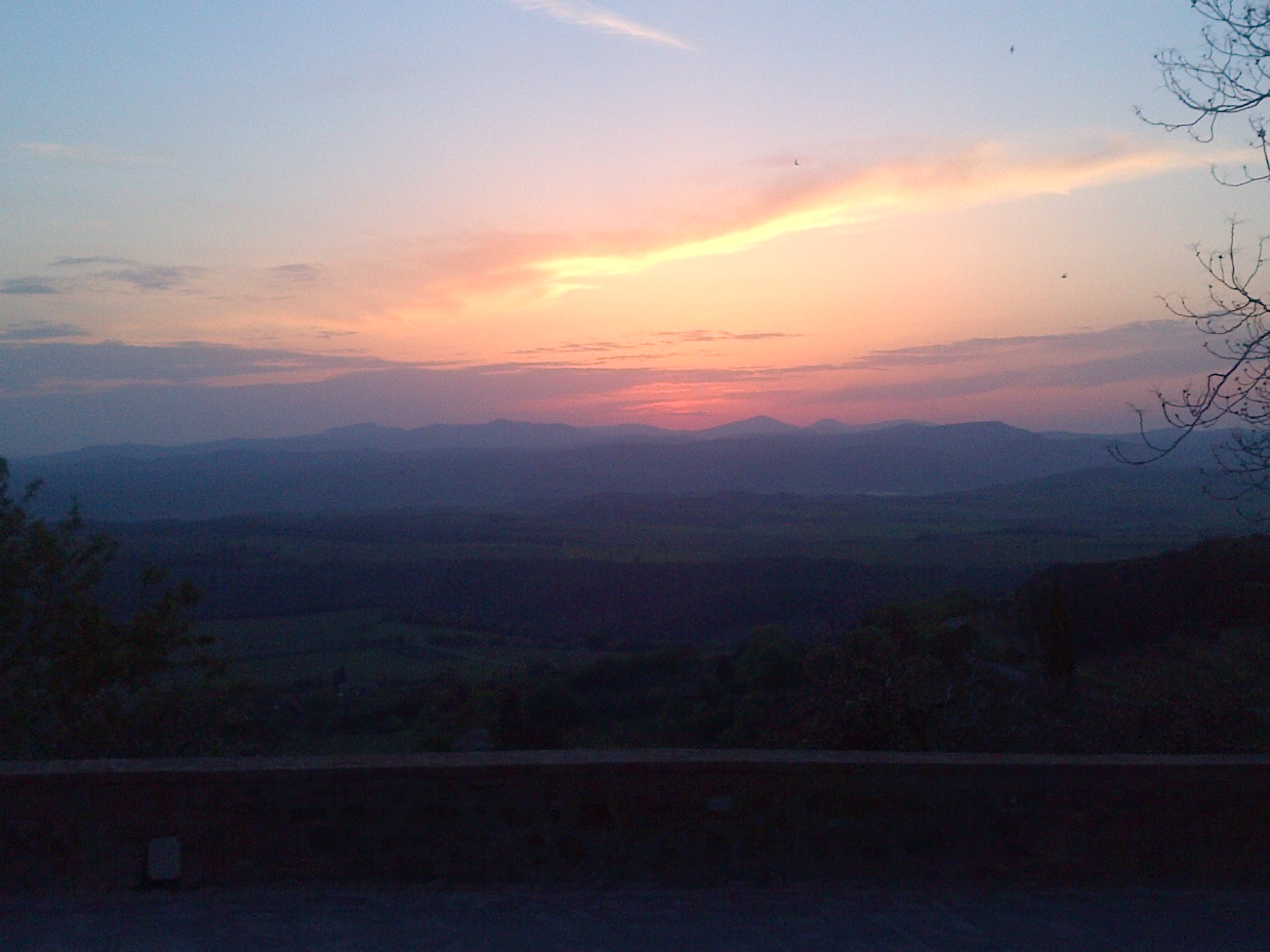 We made a visit to the quiet, sleepy town of Sant Angelo en Colle for the sole purpose at dining at this well-regarded restaurant, which is run by two friendly sisters. We killed some time at a small grocery/ cafe store, and ran across a terrific sunset (Below) before securing our outdoor table when the restaurant opened.
